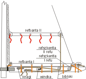 - refbanta - rząd remizek na okreslonej wysokości żagla. Na grocie najczęściej sa 2-3 refbanty,