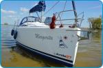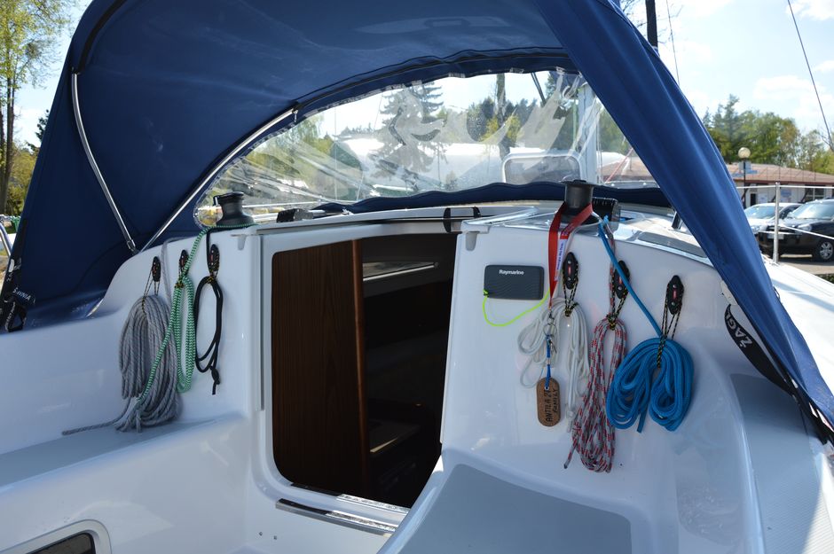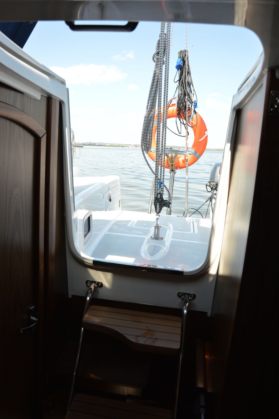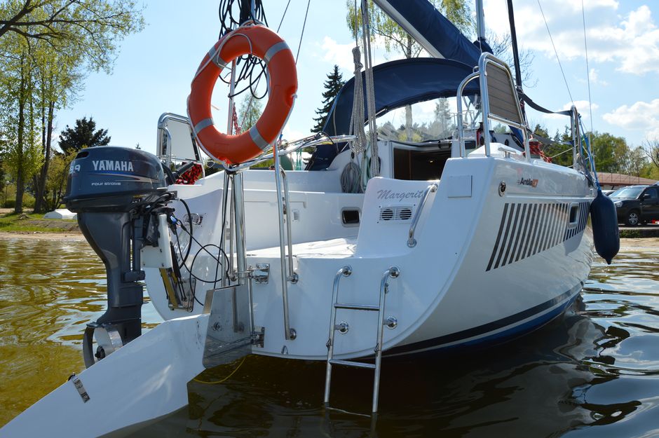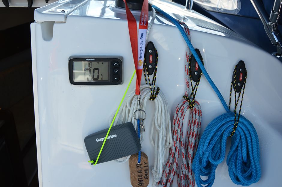 Wyposażenie dodatkowe: bramka do kladzenia masztu, sztywny sztag, roll fok, lazzy jack, instalacja wody - zbiornik, radio, mp3, TV, lodówka, ogrzewanie, instalacja 230 V, oświetlenie kokpitu, echosonda