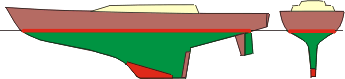 Kil oceanicznego jachtu regatowego z lat 60-70. Podobny kształt części podwodnej ma jacht Copernicus, drugi polski uczestnik pierwszych regat Whitbread. |