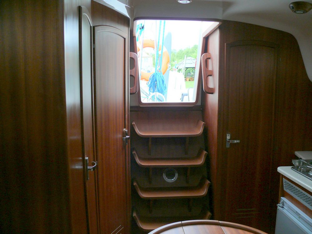Kambuz wyposażony w lodówkę, umywalkę, dwupalnikową kuchenkę, ujęcie pitnej i zaburtowej wody zasilanej pompą ciśnieniową, dodatkowo radio, stolik w kokpicie, WC chemiczne, oraz bezpieczne ogrzewanie.