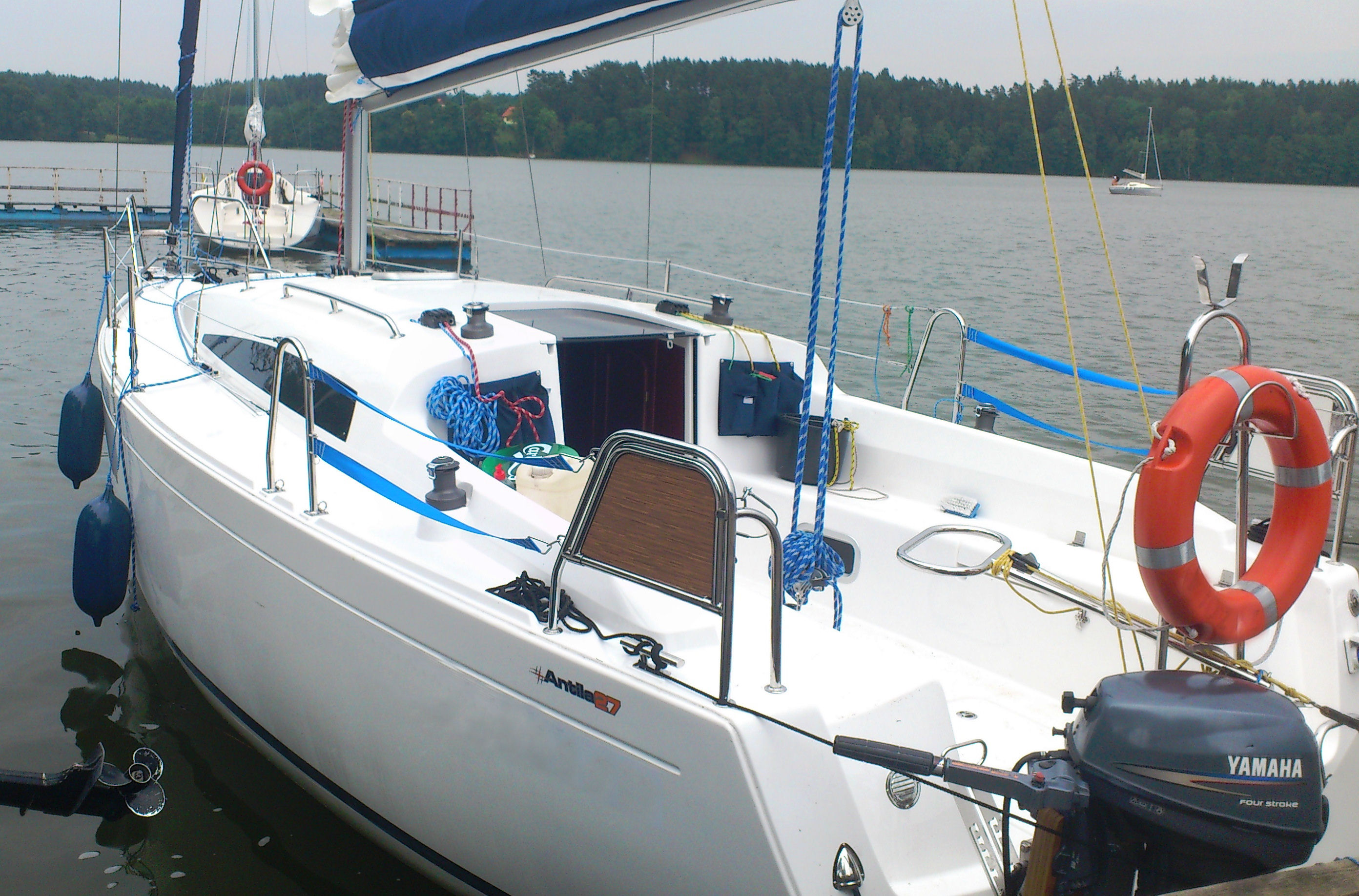 Antila 27 to nowoczesny bardzo dobrze wyposażony jacht. Małe zanurzenie pozwala dochodzić do brzegu nawet w trudno dostępnych miejscach. Jednostaka jest zabudowana w wersji "Family" z trzema zamykanymi kabinami.