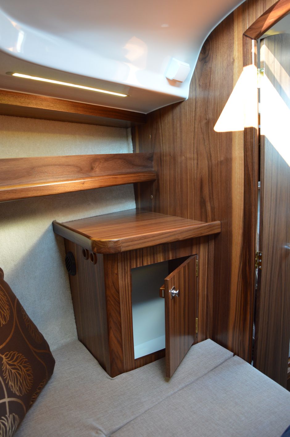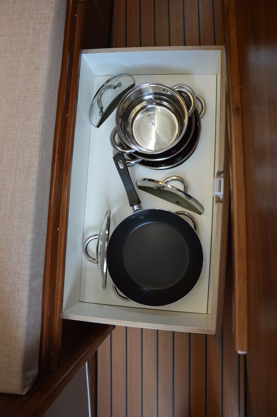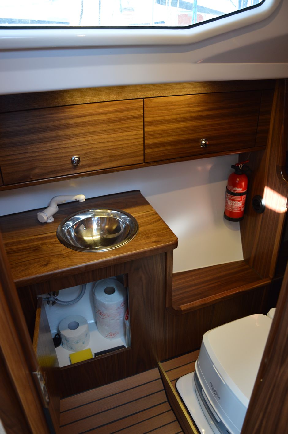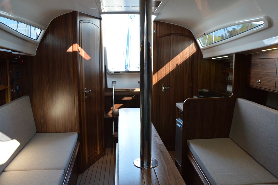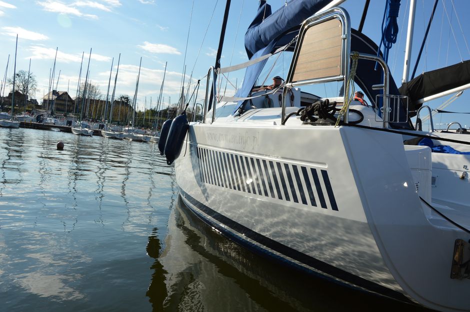 Atrakcyjna, dynamiczna sylwetka jachtu połączona z ergonomicznym ukształtowaniem pokładu oraz dopracowanymi detalami jest odzwierciedleniem dyskretnej elegancji.Podwyższona stateczność poprzeczna pozwala na zwiększenie powierzchni ożaglowania i prędkości przy słabszych wiatrach dając również poczucie komfortu i bezpieczeństwa w trudniejszych warunkach. Kształt kadłuba został zaprojektowany w sposób umożliwiający osiągnięcie wysokich prędkości oraz manewrowości i lekkości prowadzenia dające prawdziwą radość z żeglugi. Jacht został wyposażony dodatkowo w ekspress do kawy, echosonde Bidata i prysznic w kokpicie.