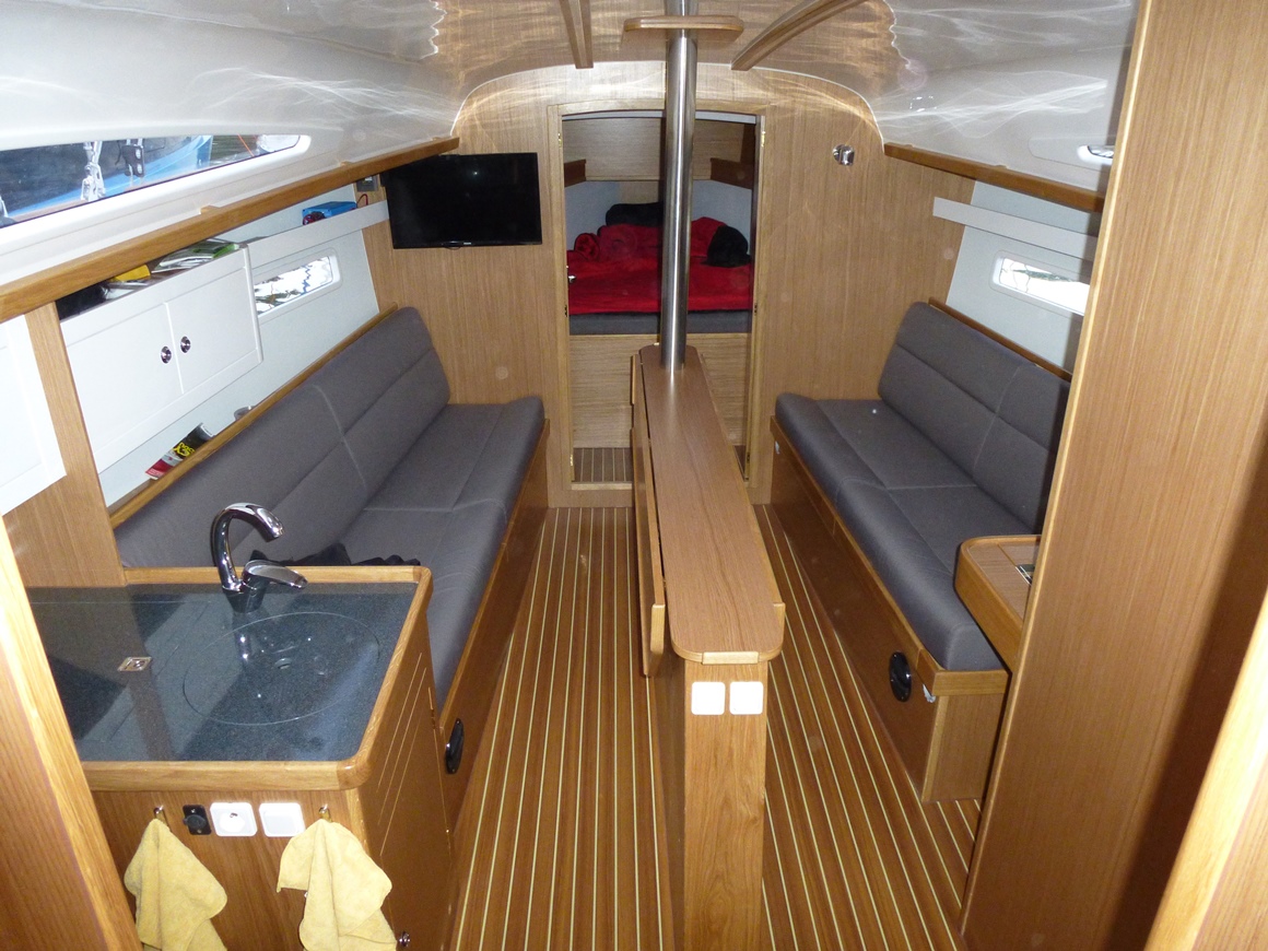 Wyposażenie dodatkowe: bramka do kladzenia masztu, sztywny sztag, roll fok, lazzy jack, instalacja wody - zbiornik, ciepła woda, radio, mp3, TV, lodówka, ogrzewanie, instalacja 230 V, ster strumieniowy, echosonda, lo