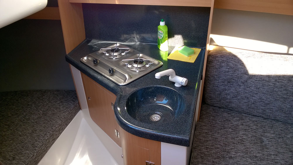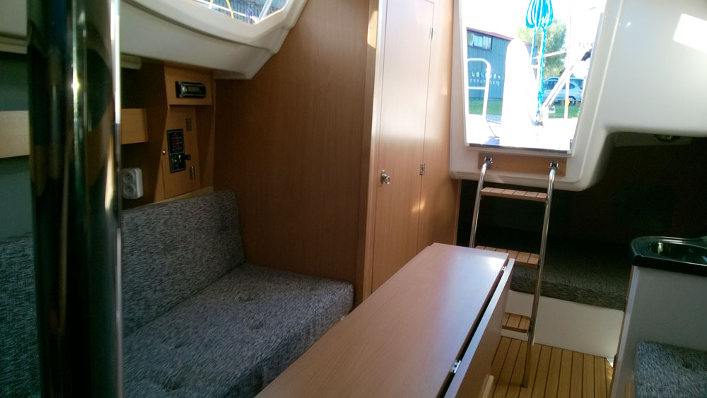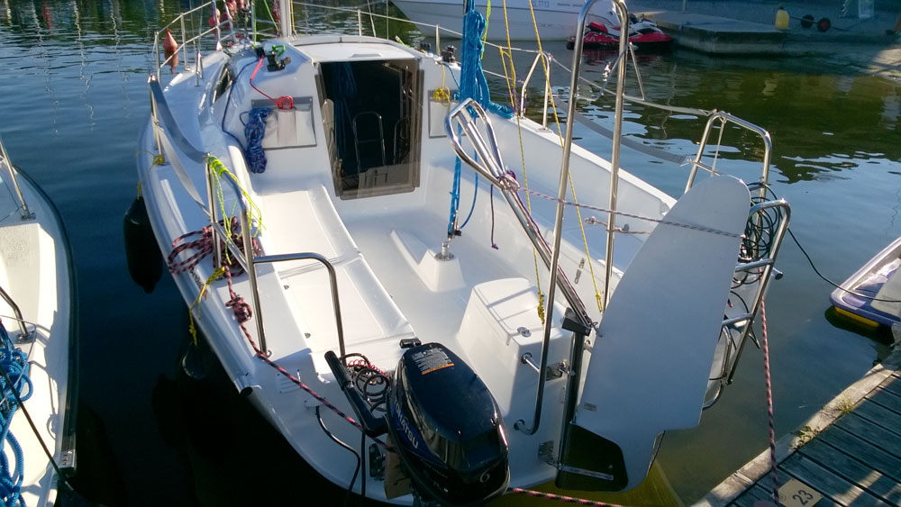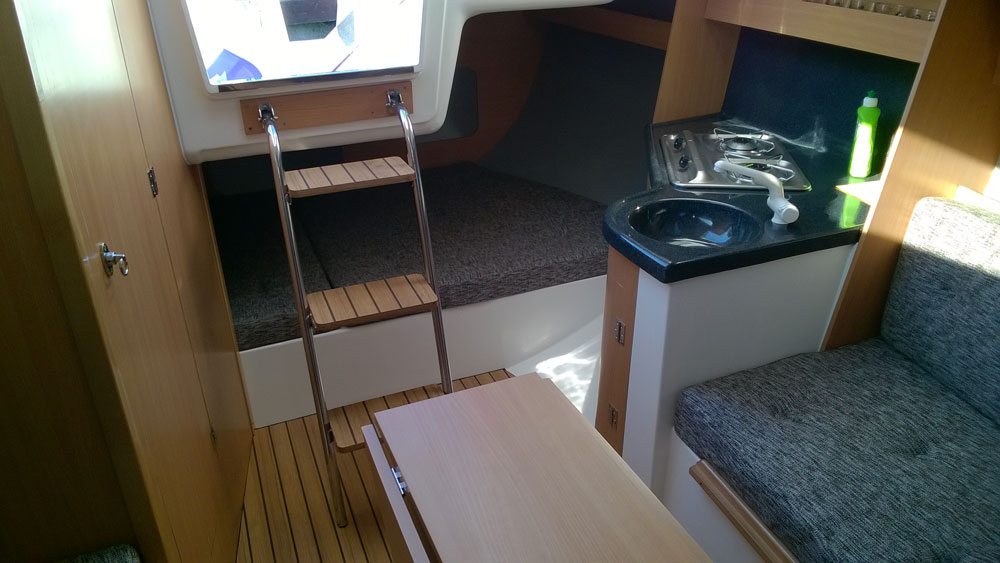 Wyposażenie dodatkowe: bramka do kladzenia masztu, sztywny sztag, roll fok, lazzy jack, instalacja wody - zbiornik, radio, CD, mp3, instalacja 230 V